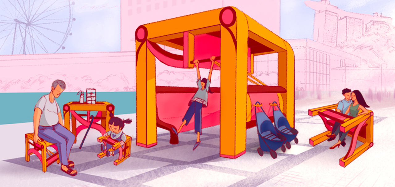 In the heart of our city’s urban jungle, FoRest is designed to be a sanctuary that invites passersby, the weary and the curious to pause, explore and rest. Inspired by how real forests are formed from a network of trees and roots, each supporting one another, FoRest is designed with interlocking modular pieces, forming a singular structure that is at once open yet intimate. Visitors can enter from any direction and discover hidden corners to experience rest in various forms, from physical and mental to sensory and social rest.